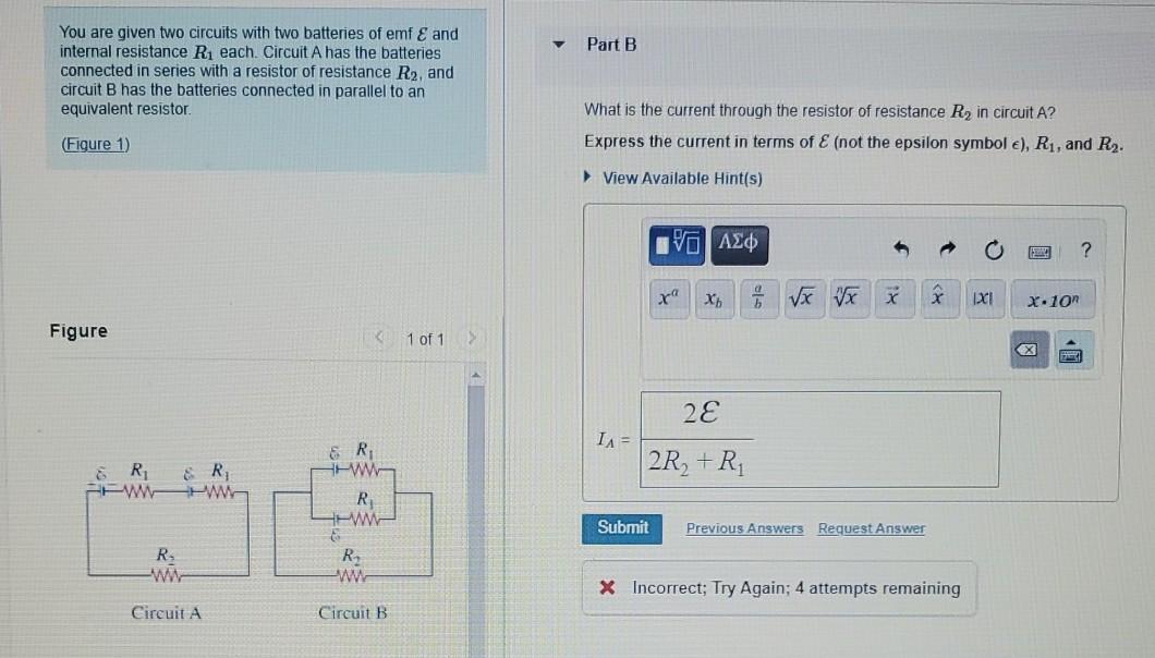 Solved Part B You are given two circuits with two batteries